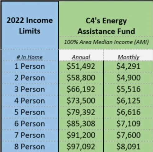 At C4, we strive to be inclusive to all of our community members. We developed the C4 Energy Assistance fund to provide increased access to energy efficiency measures and health & safety support for low-to-moderate income qualified Lake County households. Qualifying households may receive up to $1000 in assistance.