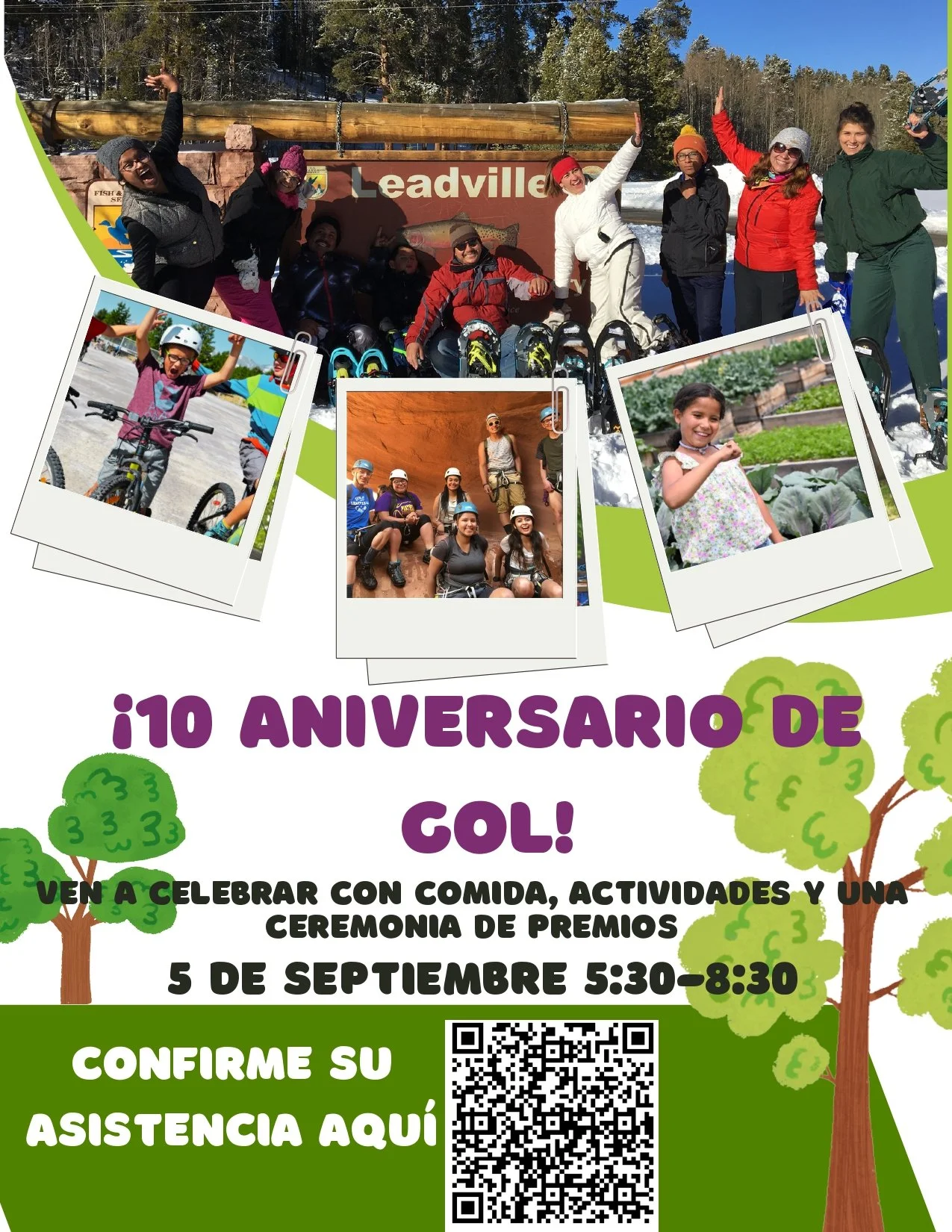 Por favor únase a nosotros el viernes 5 de septiembre de 5:30pm-8:30pm en la Biblioteca de Equipo de Get Outdoors Leadville! para celebrar nuestro 10º aniversario. Han sido ustedes, nuestr@s amig@s y comunidad, quienes hacen posible que creemos sonrisas innumerables y proveamos experiencias a bajo costo o sin costo para nuestra comunidad para crear relaciones y recuerdos para toda la vida.