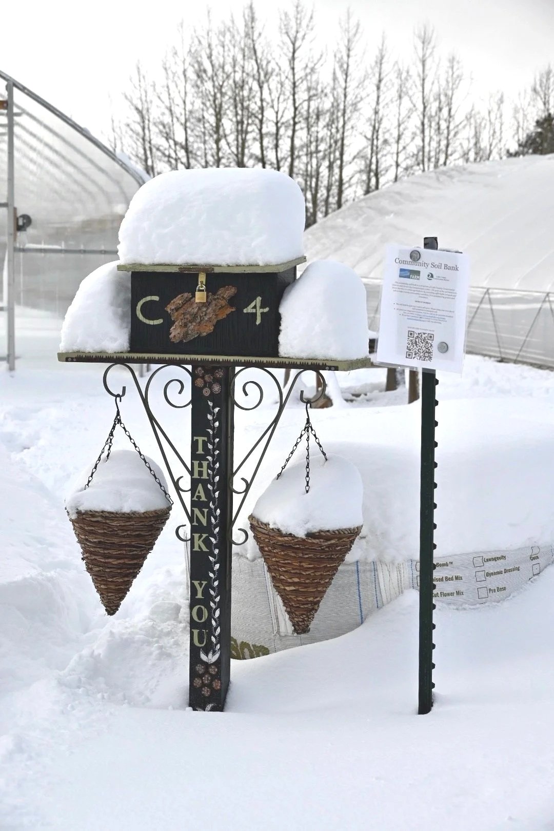 The Soil Bank is self-serve and open 24/7; just look for the donation box and pile of compost along the Cloud City Farm driveway (440 McWethy Drive).