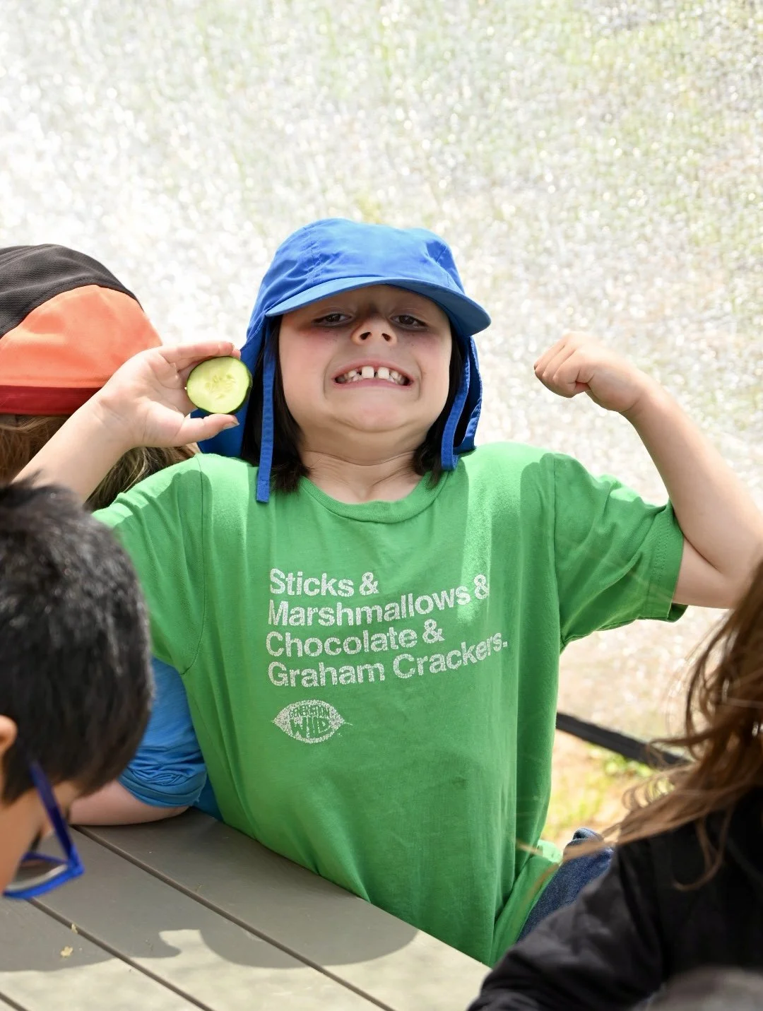 Each summer we host all Rockies Rock groups at Cloud City Farm. This is often one of the highlights of students’ time at camp! Campers help harvest (and eat!) veggies, play games, and learn about pollination, plants, and composting.